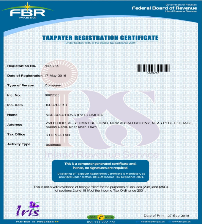 In 2013 we registered with SECP as a PVT company according to 1984 companies act.
